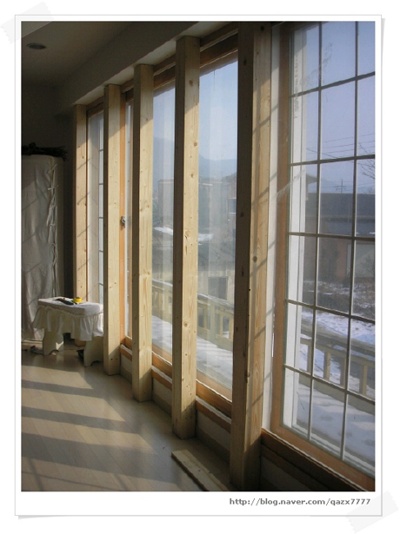 문짝을 제외한 문틀은 수성 우레탄을 아주 물게해서